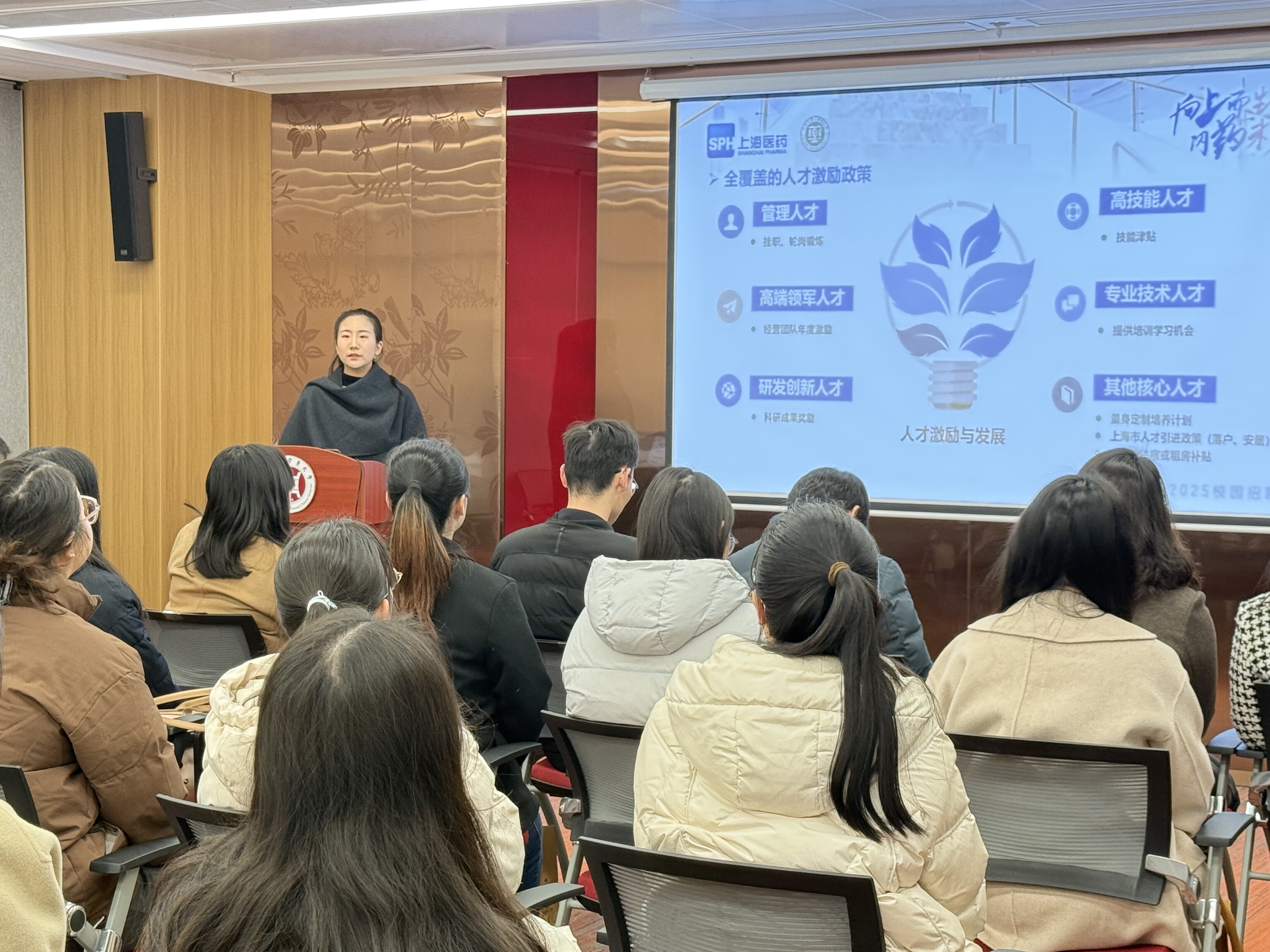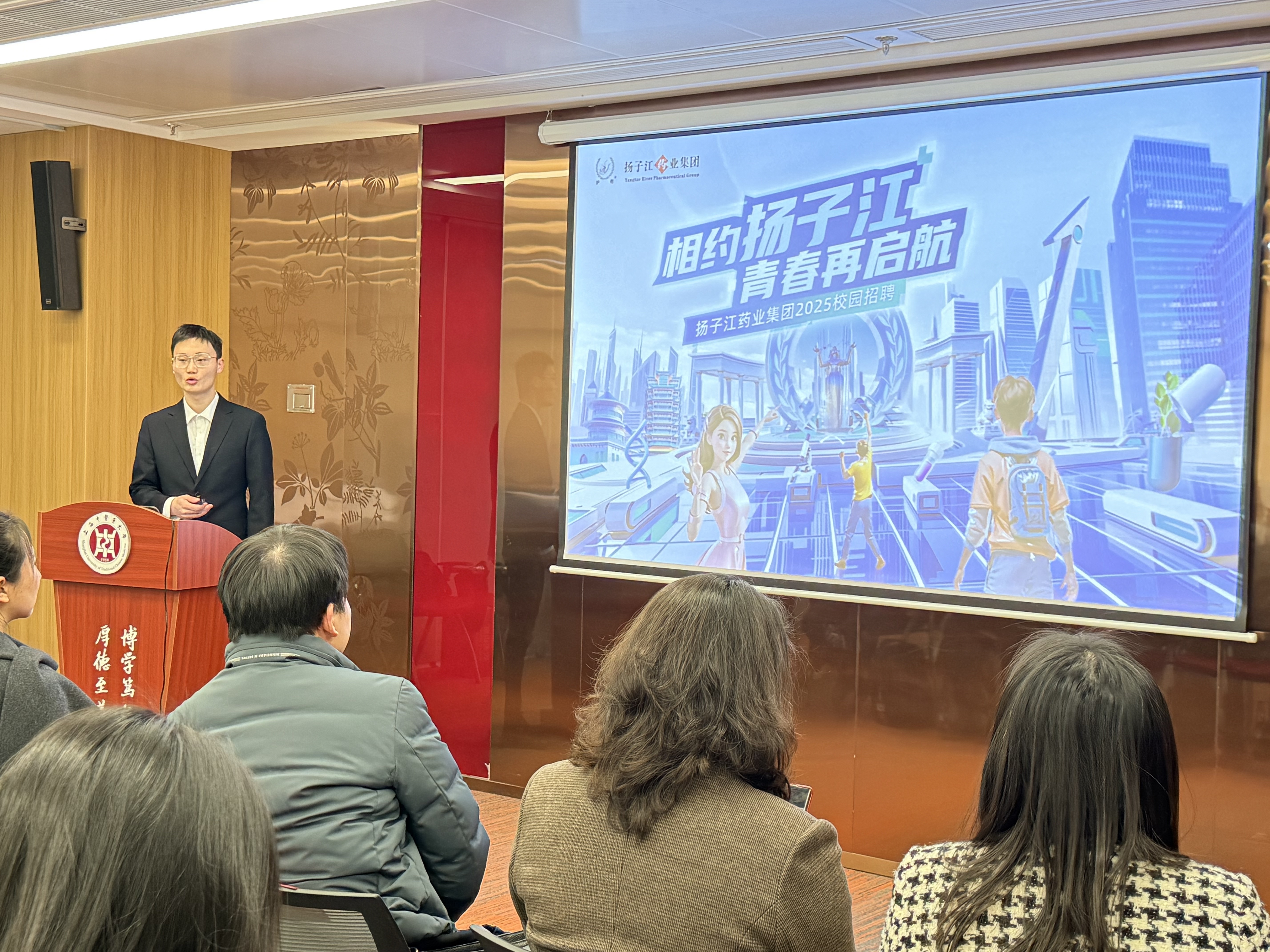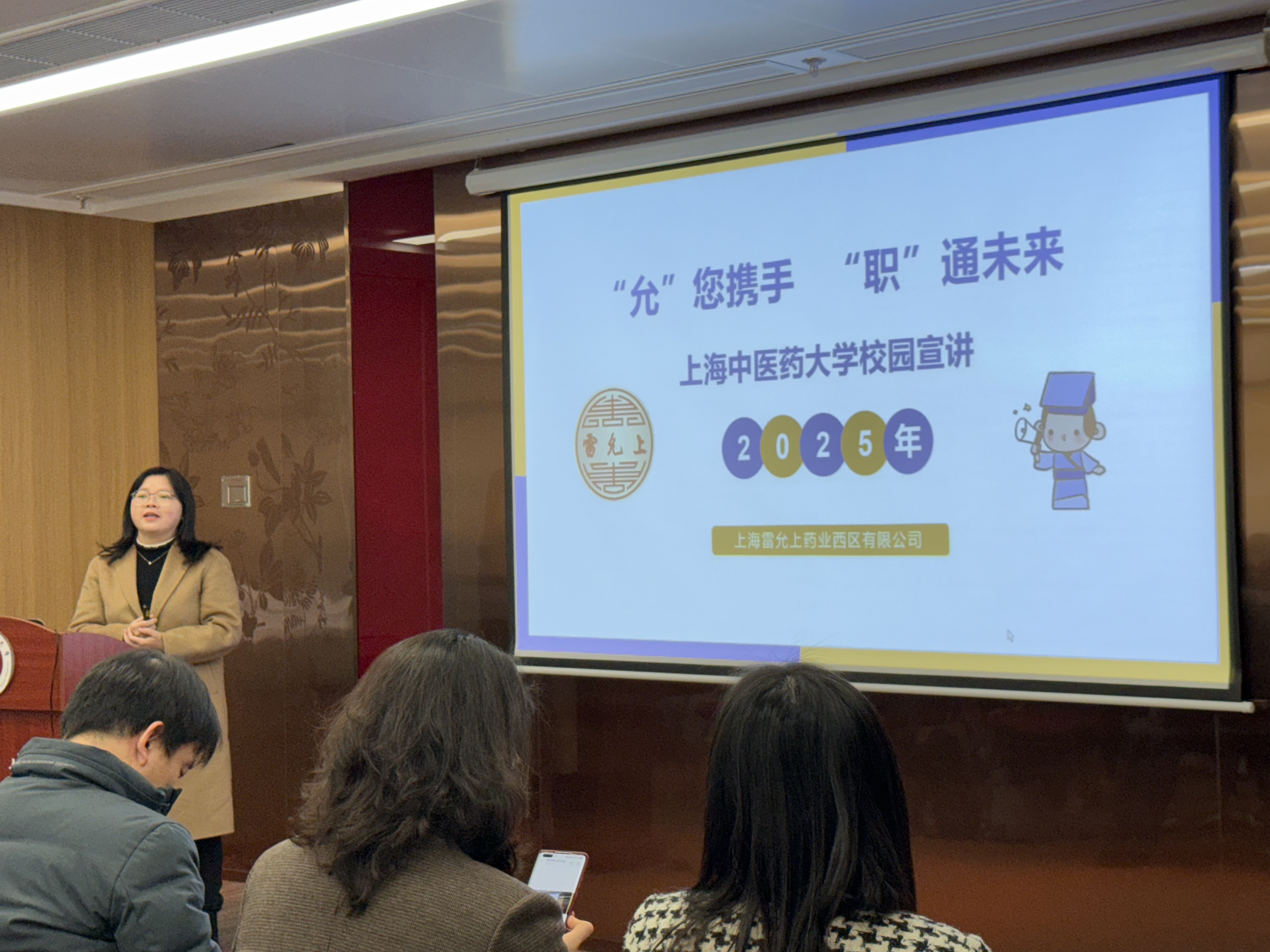 2025年3月19日上午,我院在标准化大楼辅楼206会议室成功举办了2025届毕业生就业宣讲会。本次宣讲会邀请了上海市药材有限公司、上海雷允上药业西区有限公司、扬子江药业集团上海海尼药业有限公司、麦特绘谱生物科技(上海)有限公司、东方美谷企业集团美创(上海)科技有限公司、上海德馨医院等六家知名企业参与,这些企业涵盖了中药生产、研发、医疗服务等多个领域,为我院的毕业生们带来了丰富多样的就业选择,为即将毕业的学生们提供了宝贵的就业指导和职业规划建议。