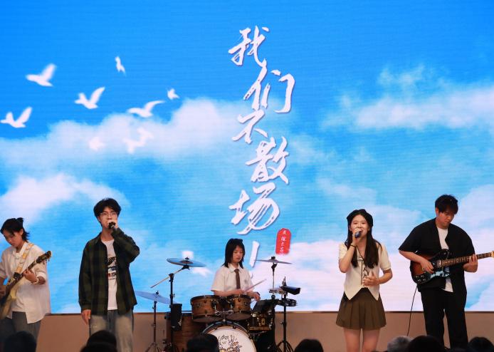 未入会场,先闻悠扬旋律。由校热音社带来的暖场音乐《你曾是少年》与《像你这样的朋友》轻轻响起。熟悉的旋律,是青春的注脚,也是回忆的引子,让同学们仿若置身于往昔校园生活的长廊之中,回忆起那些挑灯夜战攻克学术难题,又或是课间在校园漫步畅谈理想的日子。这音乐,既是对过往的温柔回望,也为今日的毕业盛典奏响了前奏。