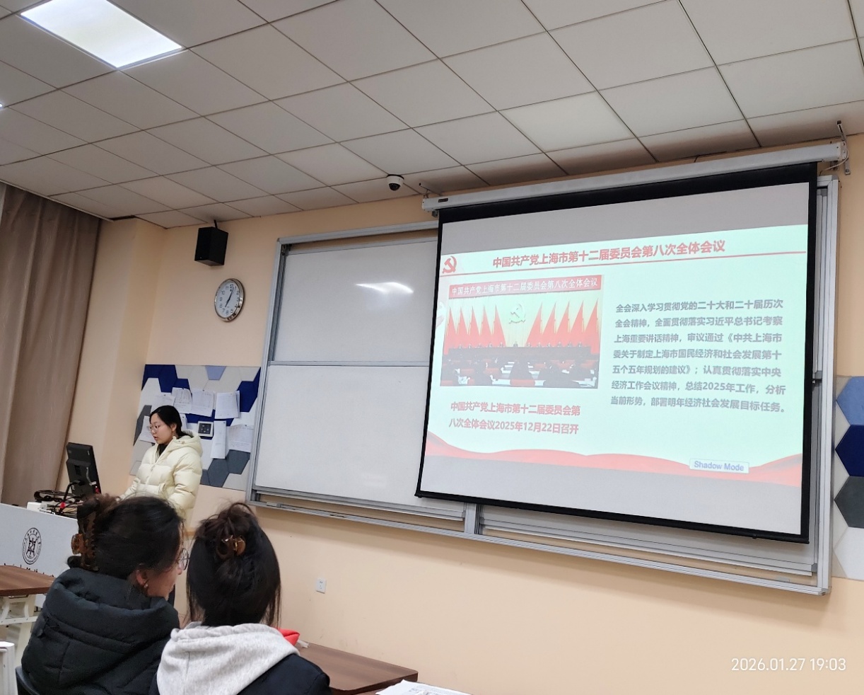 会上,党总支开展了2026年1月组织生活会。陈秀兰同志首先进行领学,组织全体党员深入学习2026年1月8日召开的全国教育工作会议精神。随后,党员代表王心睿、吕明玥、刘茉同志分享了习近平总书记在2026年第一期《求是》杂志发表的重要文章《学习好贯彻好党的二十届四中全会精神》的学习体会、中国共产党上海市第十二届委员会第八次全体会议精神、以及“学思想、强作风、建新功”有关要求,引导党员将理论学习成果转化为实际行动。